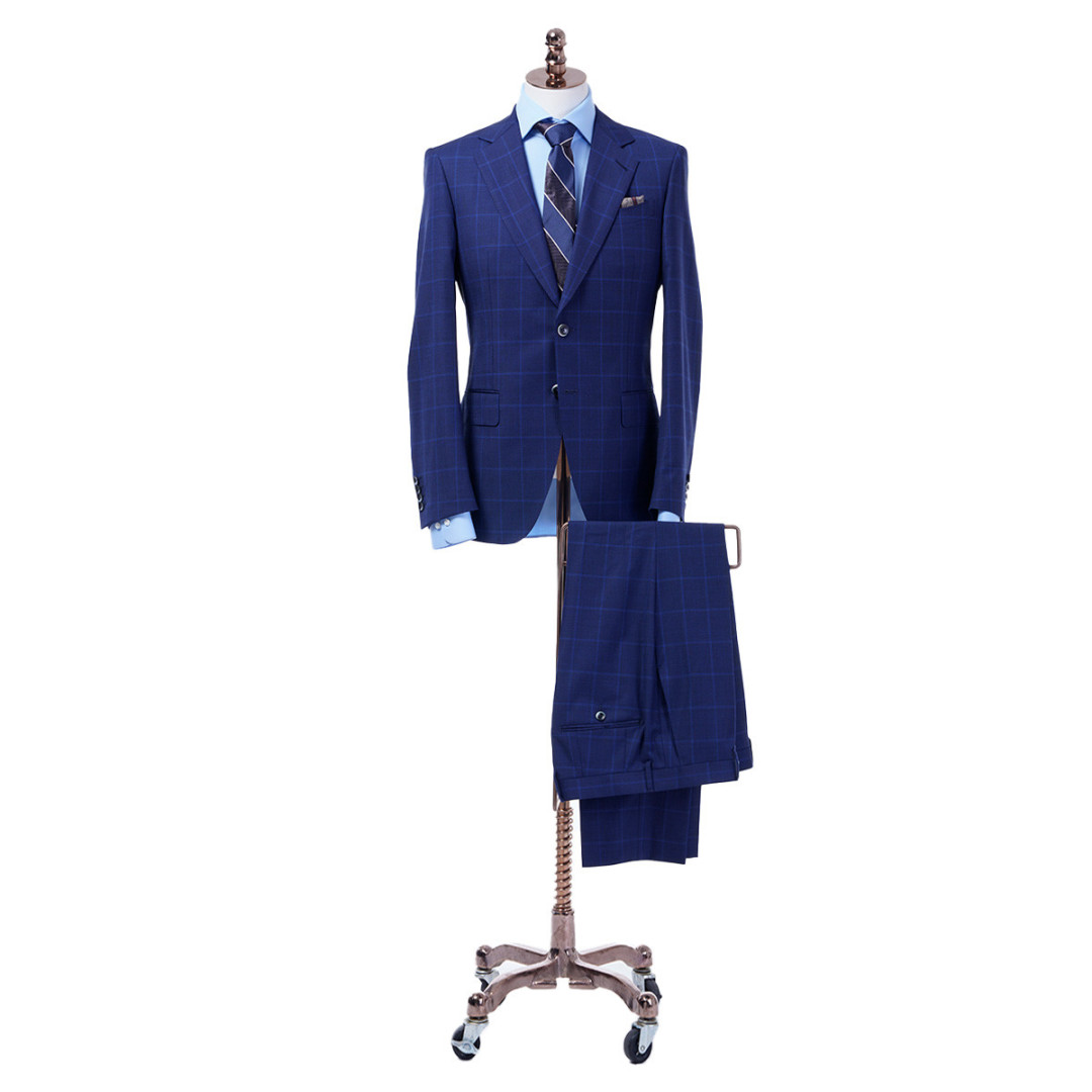 Like the Persian King of old. Darius is just a show of power. This professional blended wool suit is here to leave a lasting impression. This custom 2 button suit is built to be comfy and just as versatile. Pair it with any shade of blue or purple shirt to make the windowpane pop.