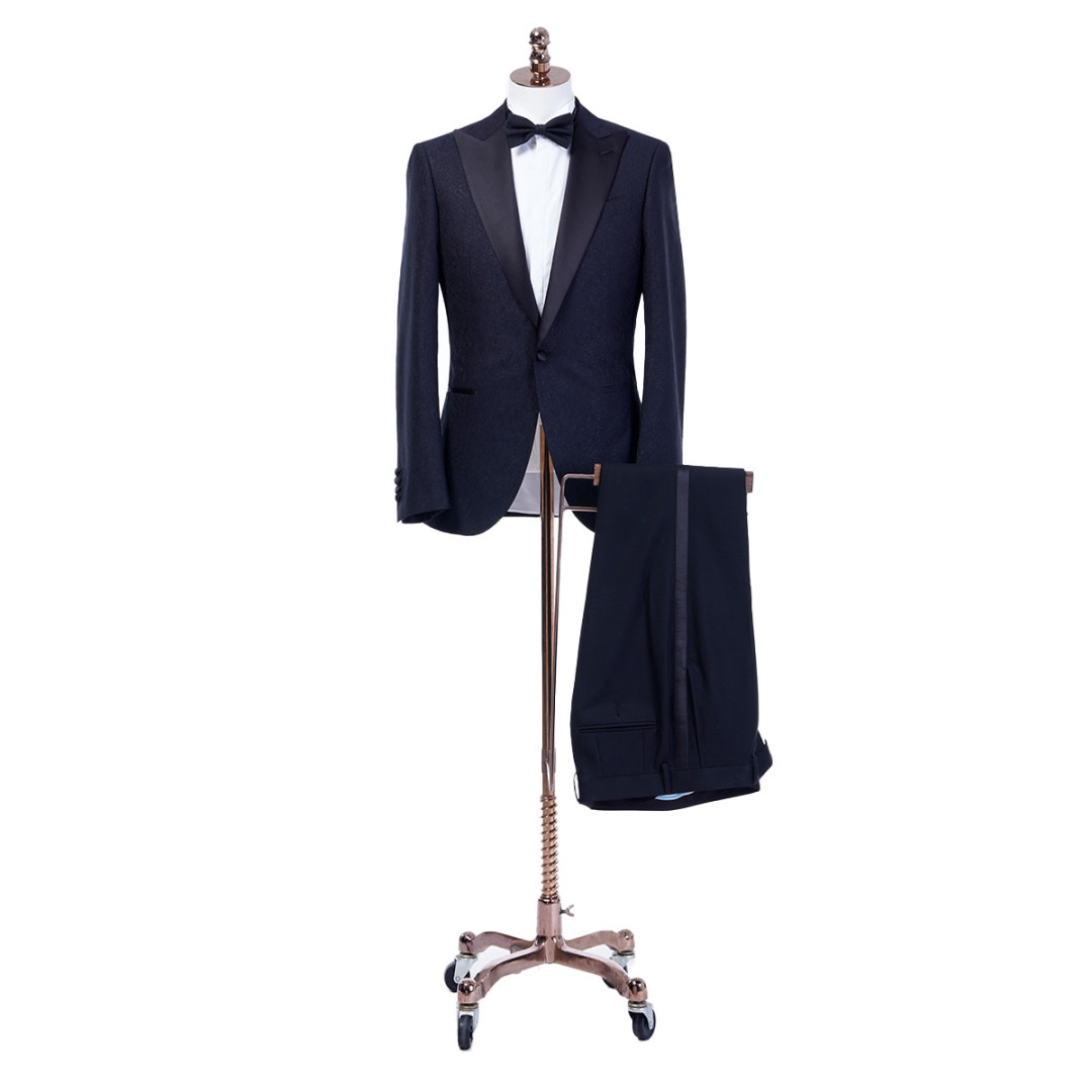 Some refer to a meteor as the most beautiful and lucky sight to see as they streak through the sky. This one of a kind Custom Tuxedo fits the name perfectly. Bright like a meteor streaking across the sky this blue Tuxedo fabric paired with a navy blue lapel and button surely will make those around you look up.