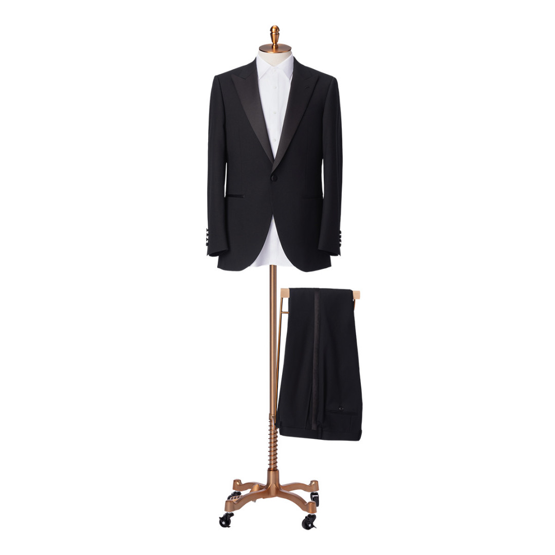 The classic staple black tuxedo. Henry is our house ruler when it comes to elegance. Classic black breathable fabric with wide satin black lapels make this truly a must have for any formal event.